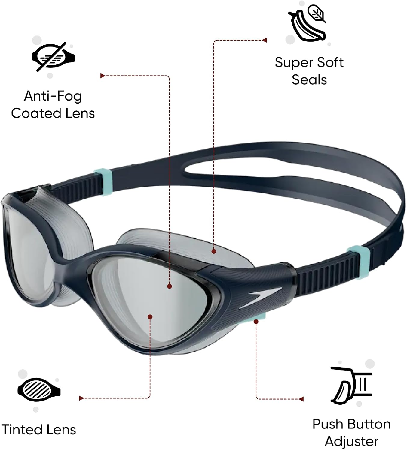 Our Biofuse goggle just got better. Featuring our best-selling Speedo Biofuse® technology, the new Women's Biofuse 2.0 goggle takes comfort and fit to the next level with our patent-pending push-button mechanism and super-soft seals with a new groove design. It’s everything you love about Biofuse - now even better.