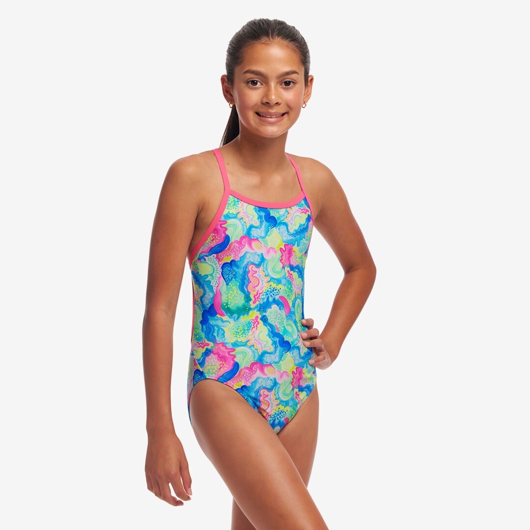 The perfect one piece if you love thin shoulder straps for freedom of movement and an open back to feel water gliding across your back. ECO C-INFINITY is 100% chlorine resistant and gives new life to discarded plastic bottles.